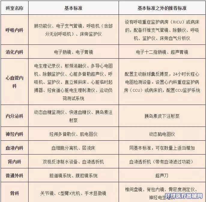 縣級(jí)醫(yī)院相關(guān)科室醫(yī)療設(shè)備配備表