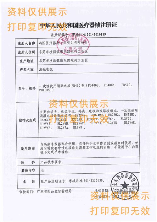 一次性使用高頻手術(shù)電極PD400型(FD104PBA、FD104PF6、PD400S、PD400N、PD500、PD400SH)重復使用高頻手術(shù)電極:PR400型PR306P
